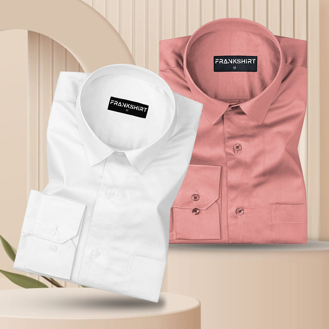 300GSM Premium Satin Shirt Combo for Men (White & Blush Pink)